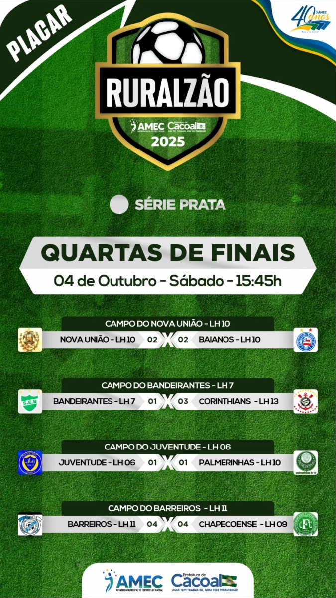 Promovido pela Prefeitura de Cacoal, por meio da AMEC, o torneio segue cumprindo seu papel de valorizar o futebol amador como instrumento de integração social, lazer e fortalecimento das comunidades rurais. A competição, que marca os 40 anos da Autarquia, tem atraído cada vez mais torcedores aos campos, consolidando-se como um dos eventos esportivos mais importantes do calendário municipal.