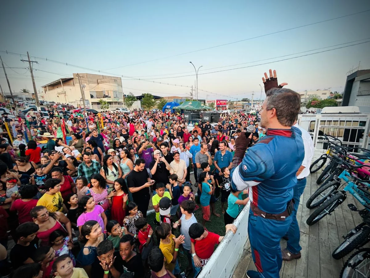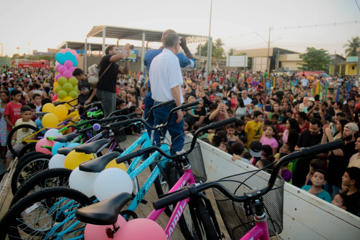 Durante o final da tarde de sábado (18), a criançada se divertiu com brinquedos infláveis, pintura na pele, distribuição de algodão doce e picolé, além do sorteio de bicicletas. O evento foi totalmente gratuito e voltado para as famílias, com o objetivo de proporcionar um dia de lazer e convivência.