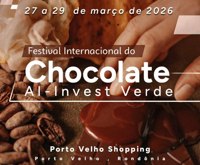 O Festival Internacional de Chocolate reunirá 12 expositores, no Porto Velho Shopping, que apresentarão chocolates produzidos em Rondônia, incluindo opções sem glúten, sem lactose, mais intensas ou mais suaves, atendendo a diferentes perfis de consumidores.