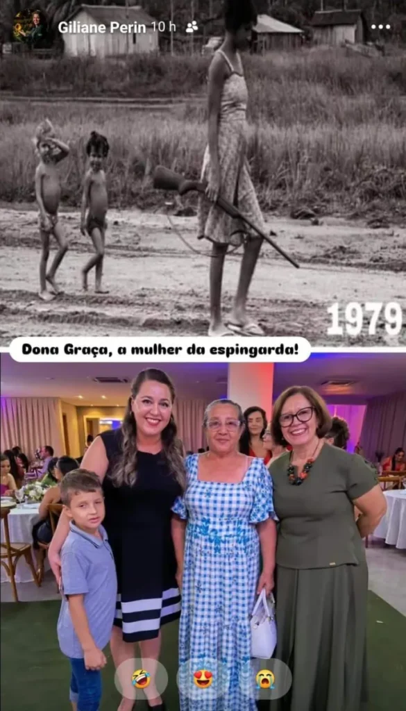 Eu tinha somente uma pista… Sabia, através da publicação de um post, que o local da foto era no Riozinho, um distrito de Cacoal (RO). Fiz uma publicação no meu Instagram procurando o paradeiro da mulher da espingarda e, no mesmo dia, conseguimos encontrá-la.