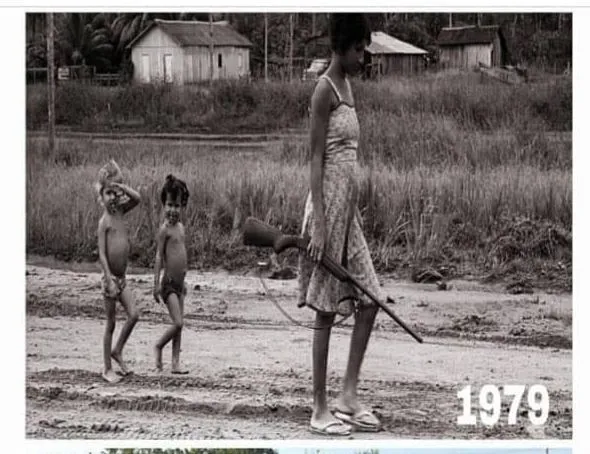 Essa obra de arte é um registro de 1979 do fotógrafo de Goiás, Kim-Ir-Sen, que durante suas passagens por Rondônia, registrou mais de 180 mil fotos do nosso estado. A admiração por essa obra me despertou a curiosidade… Quem será a mulher da espingarda?