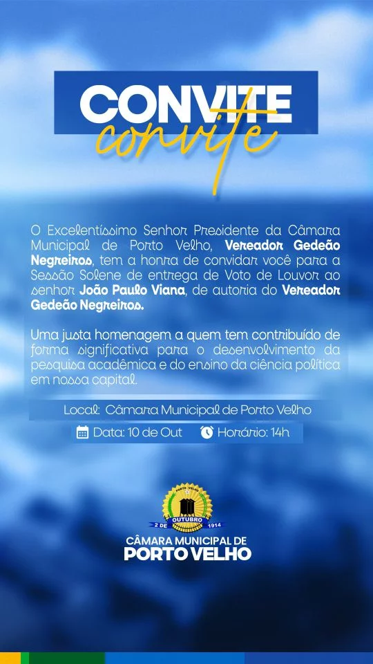 Segundo o convite oficial divulgado pelo gabinete do vereador, a cerimônia será realizada no plenário da Câmara Municipal e contará com a entrega de honrarias em reconhecimento ao trabalho de cidadãos que se destacam por sua atuação em favor da sociedade. Entre os homenageados estão nomes que contribuíram para áreas como pesquisa, educação, ciência política e desenvolvimento social em Porto Velho.